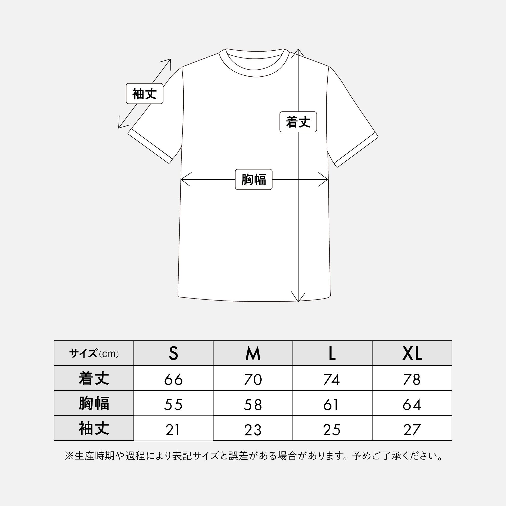 サイズ / 着丈 / 胸幅 / 袖丈(cm)