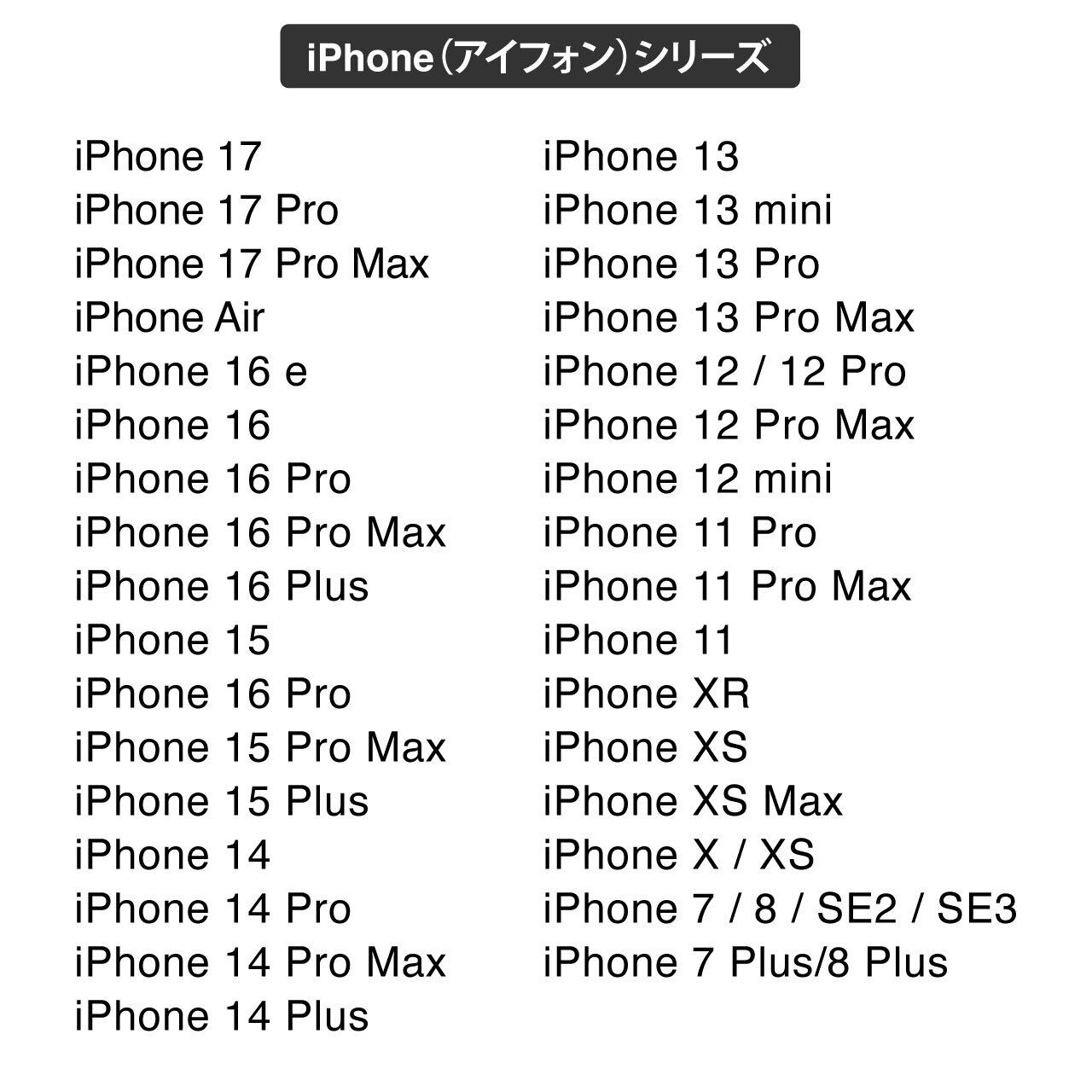 17 Pro Max,17 Pro,Air,17,16 e,16 Pro Max,16 Pro,16 Plus,16,15 Pro Max,15 Pro,15 Plus,15,14,14 Pro,14 Pro Max,14 Plus,13 Pro Max,13 Pro,13,13 mini,12,12Pro,12Pro Max,12 mini,11 Pro,11 Pro Max,11,XR,XS,XS MAX,SE3,SE2,8Plus,8,7Plus,7