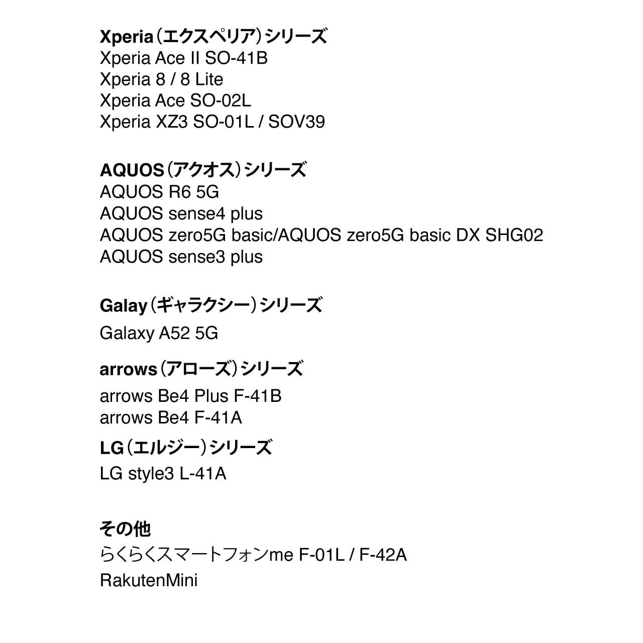 Ace II SO-41B、8 / 8 Lite、Ace SO-02L、XZ3 SO-01L/SOV39