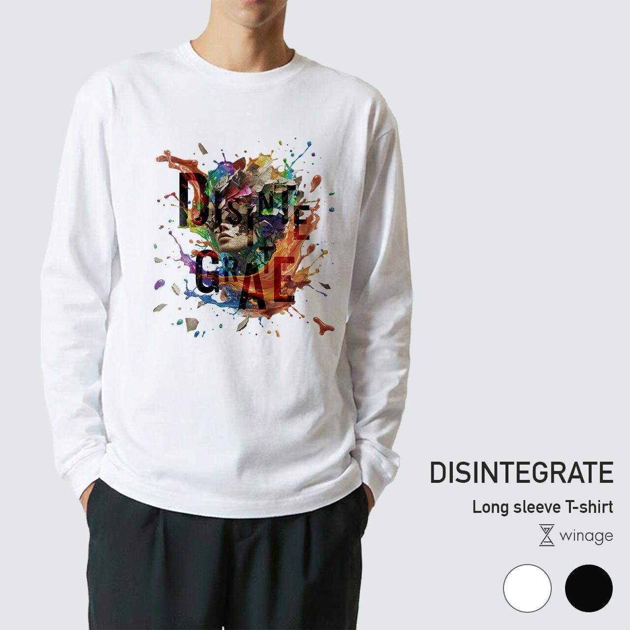 ロングスリーブTシャツ「DISINTEGRATE」 ユニセックス 5.6オンス ロンT 長袖 長そで ホワイト ブラック