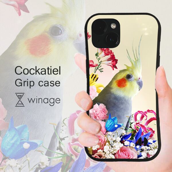 iPhone全機種対応 オカメインコ(ノーマル)のグリップケース スマホケース iPhoneケース アイフォンケース