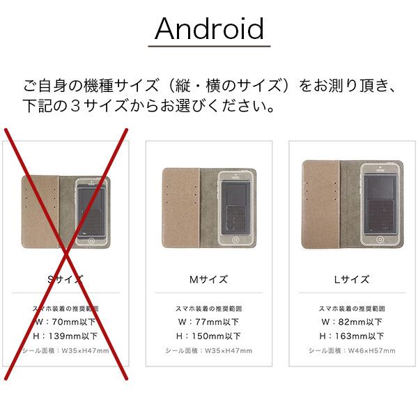 Android機種はお持ちのスマホの大きさを計測しサイズが合うものをお選びください。