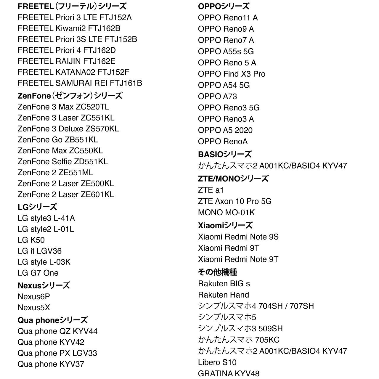 Android用対応機種は画像を参照ください。