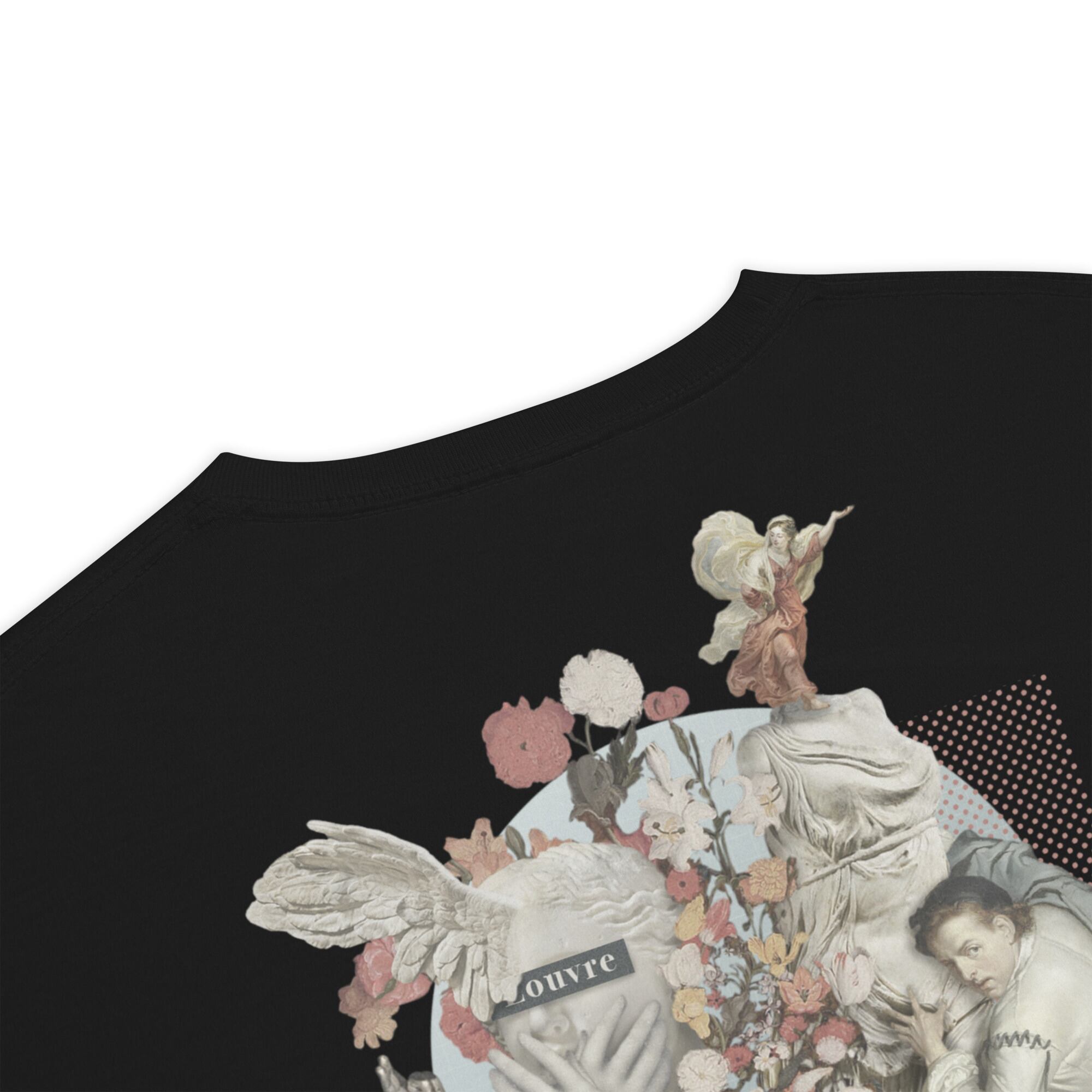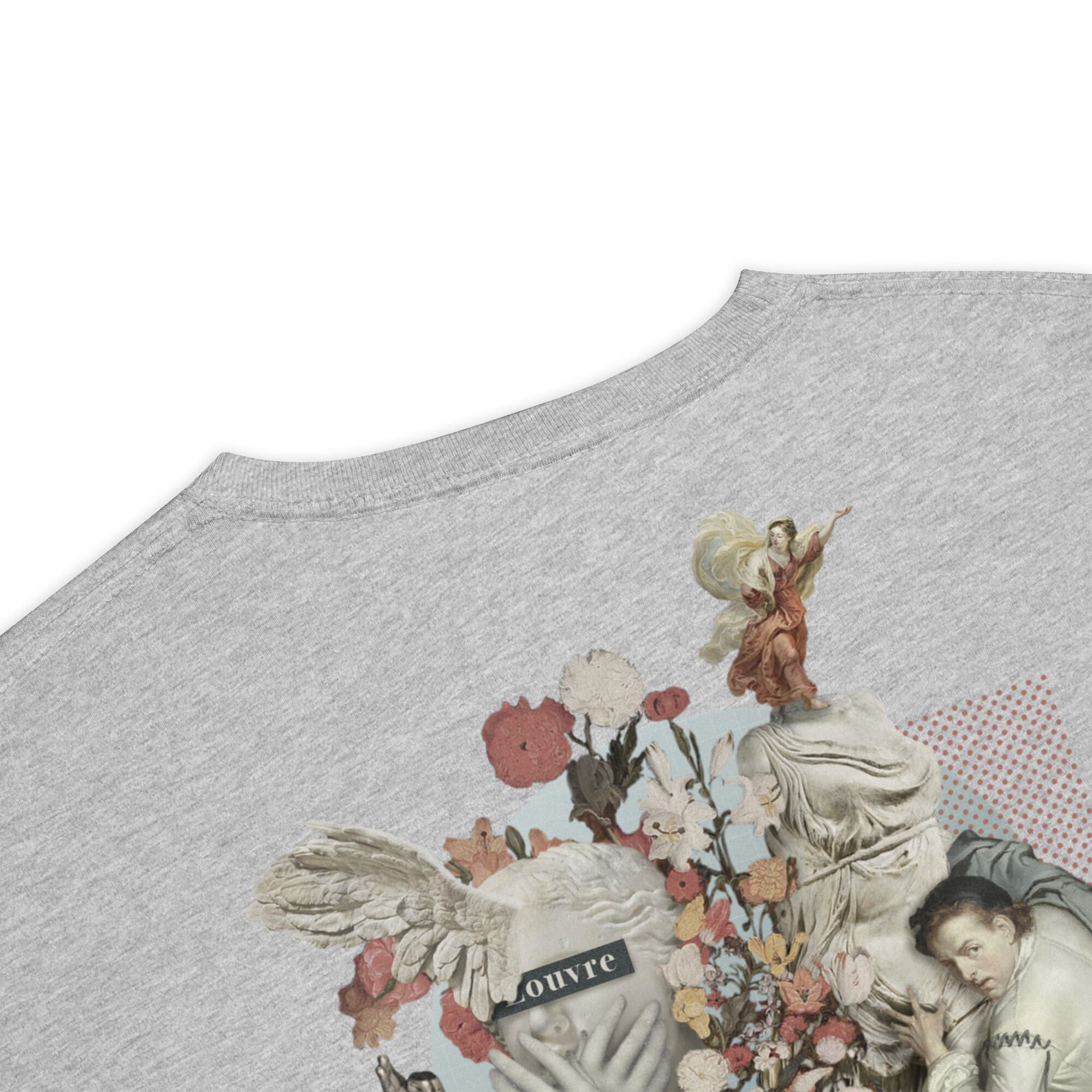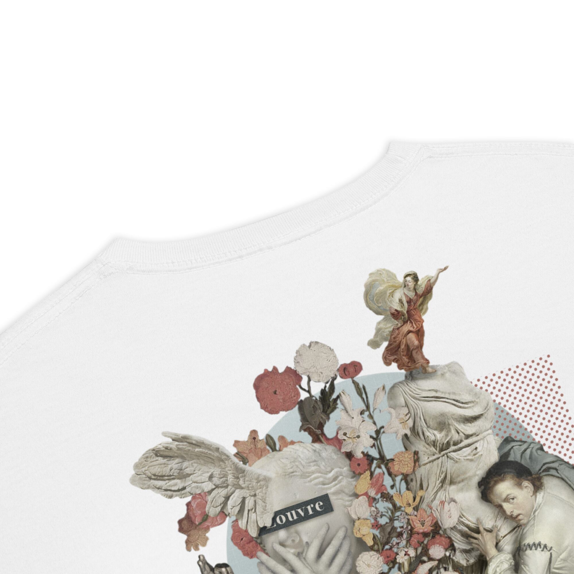ルーブル美術館の名作が、一枚のTシャツに集約されたデザインは、まるでアート作品そのもの。