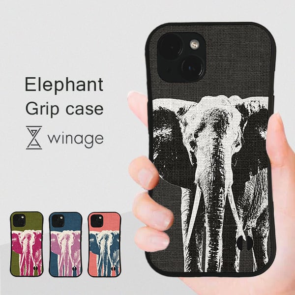 iPhone全機種対応 おかあさんゾウのグリップケース スマホケース iPhoneケース アイフォンケース
